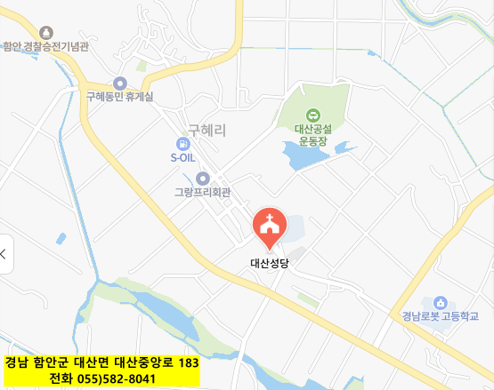승용차 : 남지IC – 11Km – 대산 성당 – 18분