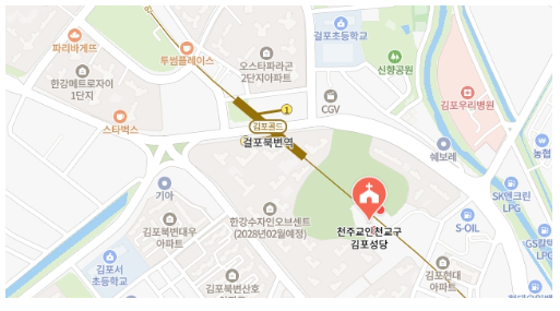 도보 : 인천 걸포북변역 – 584m – 성체 순례 성지 (도보 9분)
