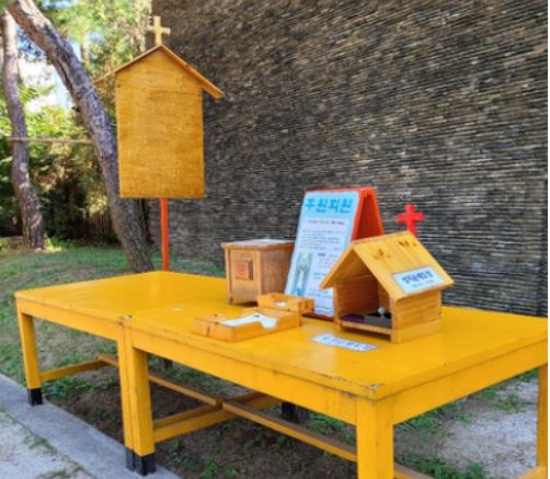 성당은 묘역 옆에 있으며, 외벽에는 16가지 모양의 창이 있다. 벽은 기와로 쌓아 올려 신앙의 세월을 표현했고, 입구에는 순례자들이 기도를 적어 봉헌할 수 있는 기와도 놓여 있다.